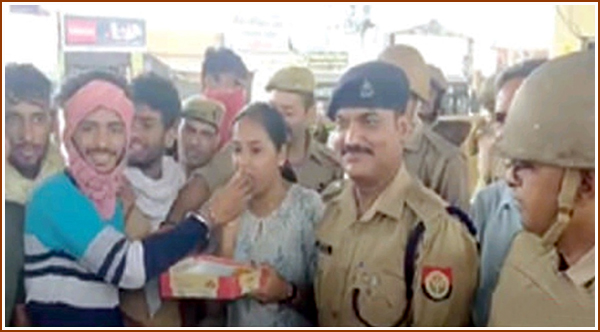 اتر پردیش پولیس نےاحتجاجیوں کو مٹھائیاں پیش کیں