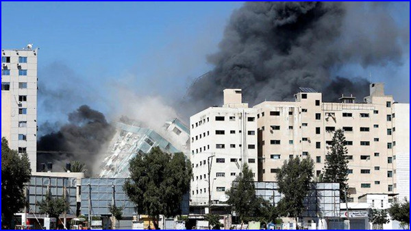 اسرائیلی فضائیہ کی بمباری : غزہ میں عالمی میڈیا اداروں کے دفاتر کی عمارت تباہ