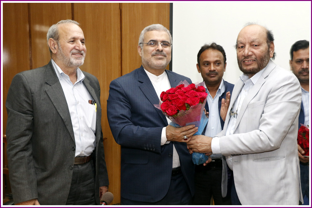 پروفیسر سید عین الحسن نے دورہ کنندہ مہمان کا فارسی زبان میں والہانہ خیر مقدم کرتے ہوئے امید ظاہر کی کہ سفیر محترم ایران کی ایسی جامعات کی نشاندہی کریں گے جن کے ساتھ اردو یونیورسٹی، اساتذہ، طلبہ اور ریسرچ اسکالرس کا باہمی تبادلہ عمل میں لاسکتی ہے۔ انہوں نے مہمانوں کا خیر مقدم کرتے ہوئے کہا کہ اردو یونیورسٹی میں مختلف ریاستوں اور ثقافتوں سے اساتذہ اور طلبہ آتے ہیں ۔