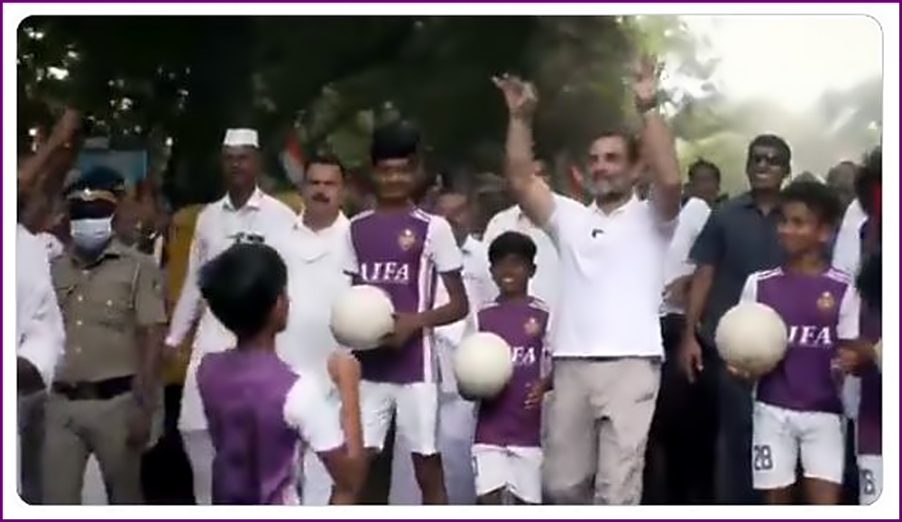 بچوں کی فرمائش پر کانگریس لیڈر راہول گاندھی نے بھی فٹ بال ہاتھ میں لیا۔ لیکن وہ یہ کہتے ہوئے دیکھے گئے کہ میں بہت چل چکا ہوں۔ اس پر وہاں موجود لوگ مسکرانے لگے۔ بچوں کے ہاتھوں سے فٹ بال لیتے ہوئے راہل گاندھی نے ایک بچے سے کہا کہ تم آگے بڑھو اور مجھے سر دکھاؤ۔ اس پر بچہ کچھ دور آگے بڑھتا ہے اور راہل گاندھی فٹ بال پھینک دیتے ہیں۔ ویڈیو میں بچہ اس کی خوب سرائی کرتے ہوئے نظر آرہا ہے۔