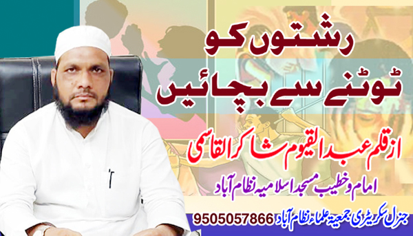 حقیقت یہ ہیکہ آج جس تیزگامی کے ساتھ رشتوں ناطوں کومسلم معاشرہ میں توڑنے کا رواج بنتا اور عام ہوتا جارہاہے وہ انتہائی تشویشناک اور قابل فکر ہے راقم سطور کے دل میں خیال آیا کہ اس حوالہ سے کچھ شعور بیداری کی جاے اور موجودہ دور میں جو دوریاں بڑھتی جارہی ہیں اس کی چند وجوہات اور اس کا تدارک کرنے کی کوشش کی جاے ۔۔۔۔