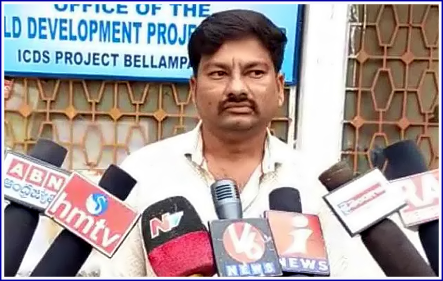 منچیریال میں چائلڈ ڈیولپمنٹ پروجیکٹ آفیسر کے دفتر پر ایک شخص کا دھرنا