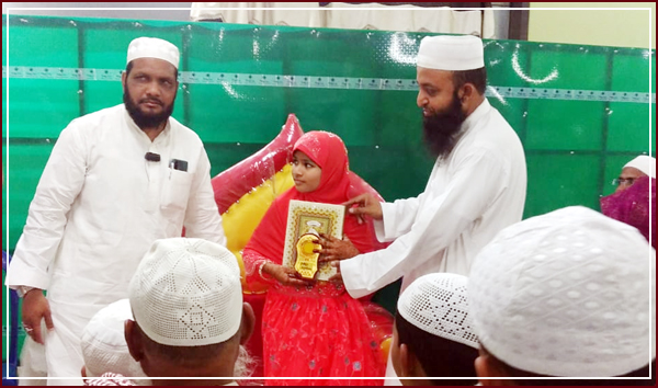 انسان کو بھی اس دنیا سے اکیلا جانا ہے لیکن قبر کی تنہائیوں میں قرآن مجید میت کا ساتھی ہوگا میدان حشر میں سفارشی بنے گا اور اللہ سے جھگڑا کرکے اپنے پڑھنے والے کو جنت میں لے جاے گا اس موقع پر مولانا مفتی عبدالمبین قاسمی کی خدمات کا اعتراف کرتے ہوے طلباء وطالبات کے سرپرستوں کی جانب سے تہنیت پیش کی گیء گرانقدر ہدایا سے نوازا گیا مولانامختاراحمد مظاہری مولاناقمرالدین مولانا صادق قاسمی حافظ افروز مولانااعجاز قاسمی مولاناعبدالصمد حسامی مولانا ایوب اشاعتی مفتی عبدالمبین قاسمی کے علاوہ دیگرحفاظ وعلماء وافراد خاندان نے ان بچیوں کو مبارکباد پیش کی اور دعاؤں سے نوازا