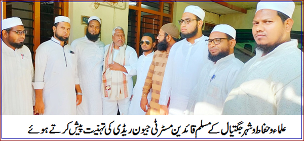 سمیع الدین اظہر ‘ محمد مکثر علی نہال ‘محمد چاند پاشاہ‘ محمد مجیب الدین آئی ین ٹی یو سی ‘ محمد معز الدین ‘ خواجہ جلال الدین‘ محمد شکیل خان محمد حبیب الدین ‘ زبیر ملک الطاف الدین التمش‘ محمد ریاض ‘مقیت نانا‘حافظ خواجہ عقیل ‘ مولانا عبدالماجدعلی ندوی ‘مولانا شیخ امام ‘ حافظ محمد ظفر‘ حافظ زبیر خان‘حافظ محمد فاروق‘ حافظ محمد مذکر‘ نے شال پوشی و گلپوشی کرتے ہوئے تہنیت پیش کی