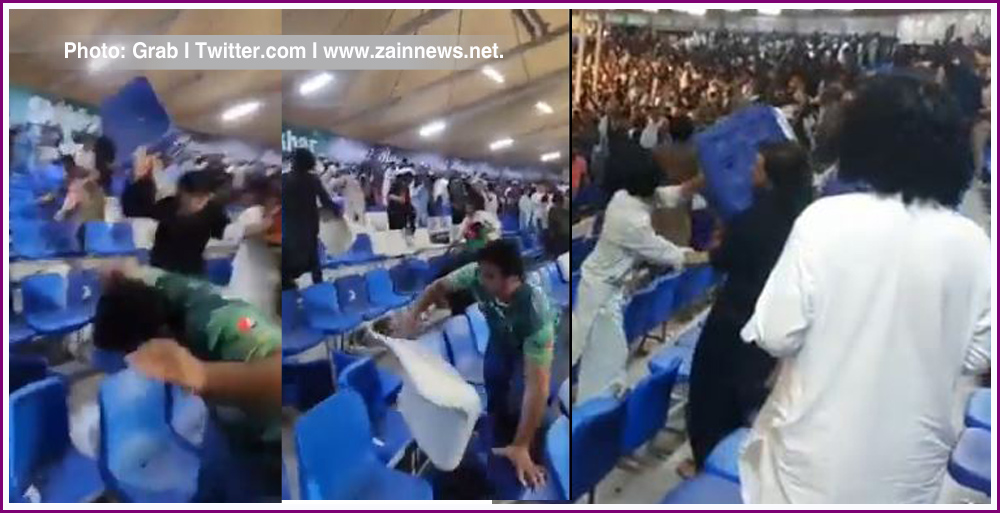 ویڈیو میں دیکھا جا سکتا ہے کہ افغانستان اور پاکستان کے شائقین سٹینڈز میں کرسیاں اکھاڑ کر اپنے اپنے ملکوں کے جھنڈے لہرا رہے ہیں۔ اطلاعات کے مطابق میچ ہارنے کے بعد افغان حامیوں نے اسٹیڈیم میں موجود کچھ پاکستانی شائقین کی پٹائی کی۔