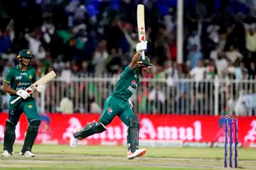 انہوں نے فضل الحق فاروقی کی پہلی دو گیندوں پر چھکا لگا کر میچ کا خاتمہ کر دیامیچ میں افغانستان کی ٹیم نے پہلے بیٹنگ کرتے ہوئے مقررہ 20 اوورز میں 129 رنز بنائے۔ ابراہیم زدران نے سب سے زیادہ 35 رنز کی اننگز کھیلی۔جواب میں پاکستانی ٹیم نے آخری اوور کی دوسری گیند پر 9 وکٹوں کے نقصان پر 131 رنز بنائے۔شاداب خان نے 36، افتخار احمد نے 30 اور محمد رضوان نے 20 رنز بنائے۔ نسیم شاہ چار گیندوں پر 14 رنز بنا کر ناٹ آؤٹ رہے۔