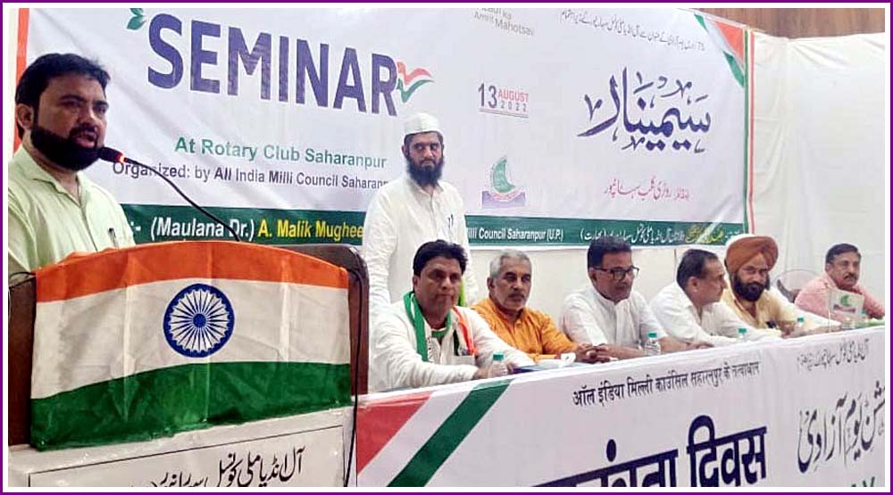 آل انڈیا ملی کونسل سہارنپور کے زیر اہتمام نسل نو کو مجاہدین آزادی کے کردار سیرت سے روشناس کرانے کے لئے جشن یوم آزادی کے عنوان سے روٹری کلب سہارنپور میں ایک خصوصی سیمینار منعقد ہوا ،جس میں معزز و ممتاز شخصیات نے شرکت کر سیمینار کو رونق بخشی۔سیمینار میں بحیثیت مہمان خصوصی جامعہ طبیہ دیوبند کے سکریٹری ڈاکٹر انور سعید نے شرکت نے،  صدارت ٹھاکر وریندر سنگھ نے کی،جب کہ نظامت کے فرائض مولانا ڈاکٹر عبدالمالک مغیثی ضلع صدر ملی کونسل سہارنپور نے انجام دئے۔پروگرام کا آغاز جامعہ رحمت گھگھرولی کے استاذ قاری محمد اسجد جامعی کی تلاوت کلام اللہ ہوا۔