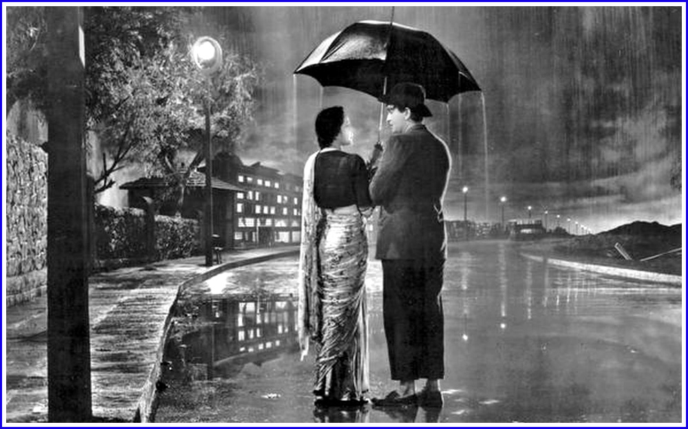 بارش کے مختلف تاثرات کے ساتھ ساتھ ہمارے گیت نگاروں اور ہمارے فلم سازوں نے بھی کہانی کے کردار اور صورتحال کے لحاظ سے اسکرین پر جادو جگانے میں کوئی کسر نہیں چھوڑی۔ میرے پسندیدہ بارش کے گانوں کی فہرست میں سب سے اوپر بمل رائے کے ‘پرکھ’ کا ‘او سجنا برکھا بہار آئی…’ ہے جسے سادھنا بالکونی میں کھڑے اپنے بوائے فرینڈ کے انتظار میں گاتی ہے۔ یہ محبت اور فطرت کی تعریف میں بہت دھیما گانا تھا۔
