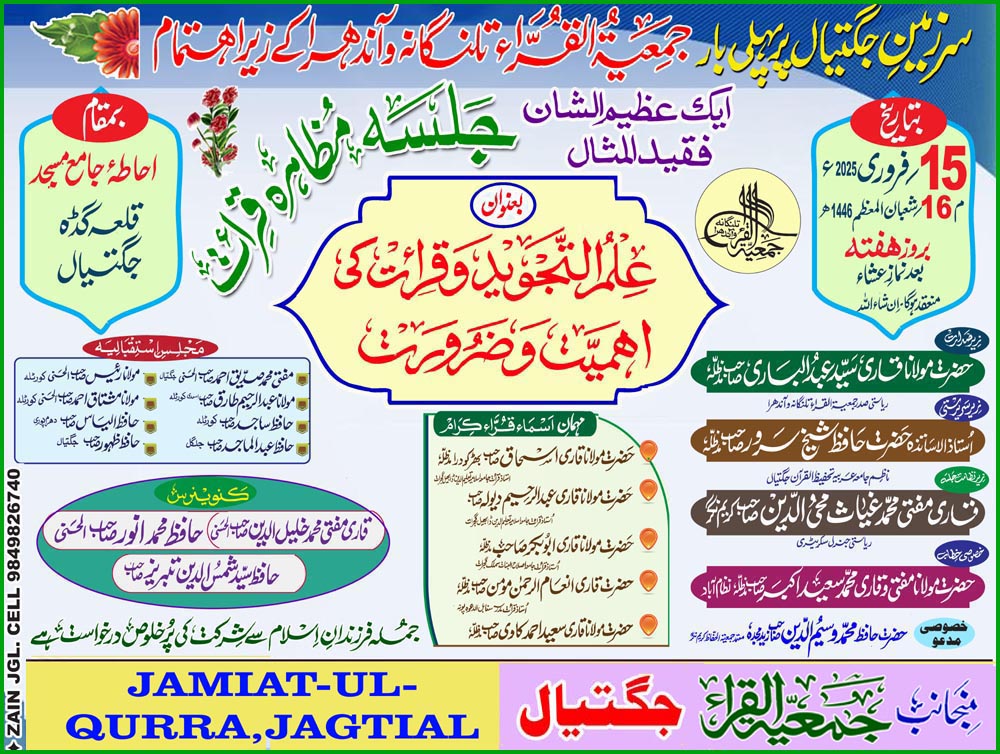 شهر جگتیال میں آج عظیم الشان جلسه مظاهره قرأت جگتیال :۔15؍فروری (راست) جنرل Read More…
