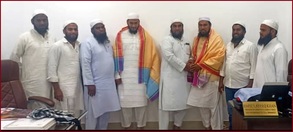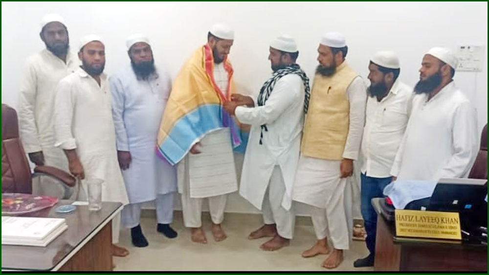 نظام آباد پہونچ كرحافظ لئيق خان صاحب صدرجمعيۃ علماء نظام آباد  اور مفتى محبوب خان كو  پرمسرت  مباركبادى  پيش كى  اور   شال پوشى وگلپوشی کرتے ہوئے تہنیت پیش کی۔