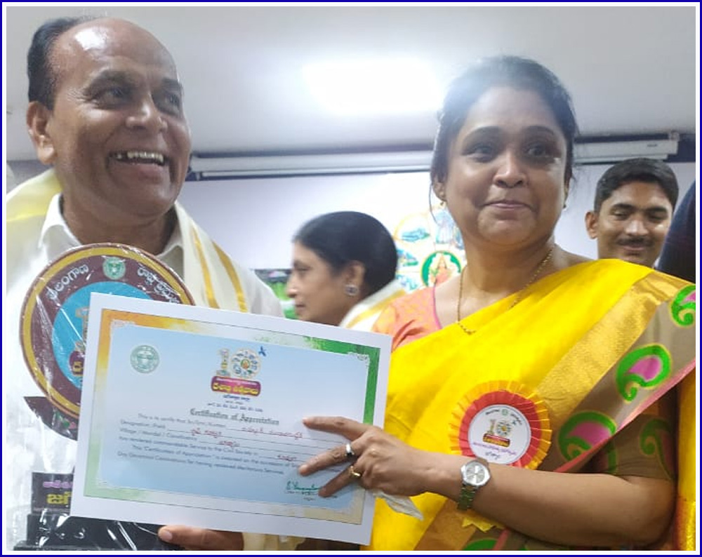 شہر جگتیال کے معروف‘ مترنم مزاحیہ شاعر محمد منور الدین المروف کریٹکل جگتیالی کو ریاست تلنگانہ کی تاسیس کی دہائی تقاریب کے موقع پر مربوط ضلعی دفاترکی عمارت میں تلنگانہ یوم ادب کے عنوان پر منعقدہ مشاعر ے ؍کوئی سملین میں ضلع کلکٹر جگتیال محترمہ شیخ یاسمین باشاہ نے توصیفی سند میمنٹو دیا اور شال پوسی وگلپوشی کرتے ہوئے تہنیت پیش کی ۔