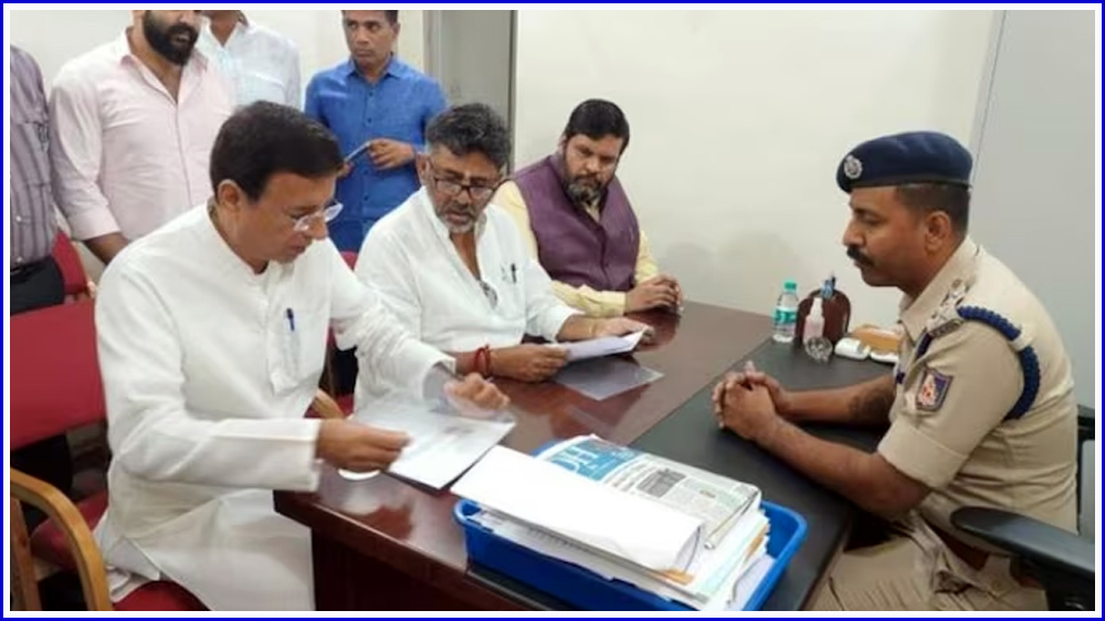 امیت شاہ کانگریس قائدین رندیپ سنگھ سرجے والا، ڈاکٹر پرمیشورا اور کانگریس کرناٹک کے صدر ڈی کے شیوکمار کے ساتھ بی جے پی کے دیگر لیڈروں کی شکایت نےبنگلورو کے ہائی گراؤنڈ پولیس اسٹیشن میں شکایت درج کرائی ہے۔ امیت شاہ کے علاوہ دیگر بی جے پی لیڈروں اور لوگوں کے نام بھی ہیں جنہوں نے وجئے پورہ ریلی کا اہتمام کیا تھا۔