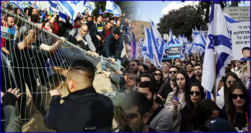 وزیر اعظم بنجمن نیتن یاہو کی حکومت اسرائیل میں عدلیہ کے نظام میں اصلاحات کے لیے ایک نیا بل لے کر آئی ہے، جس پر پارلیمنٹ میں زبردست ہنگامہ ہوا۔ اسی دوران 10 ہزار سے زائد افراد نے پارلیمنٹ کے باہر احتجاج کیا۔