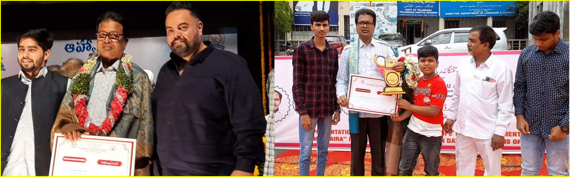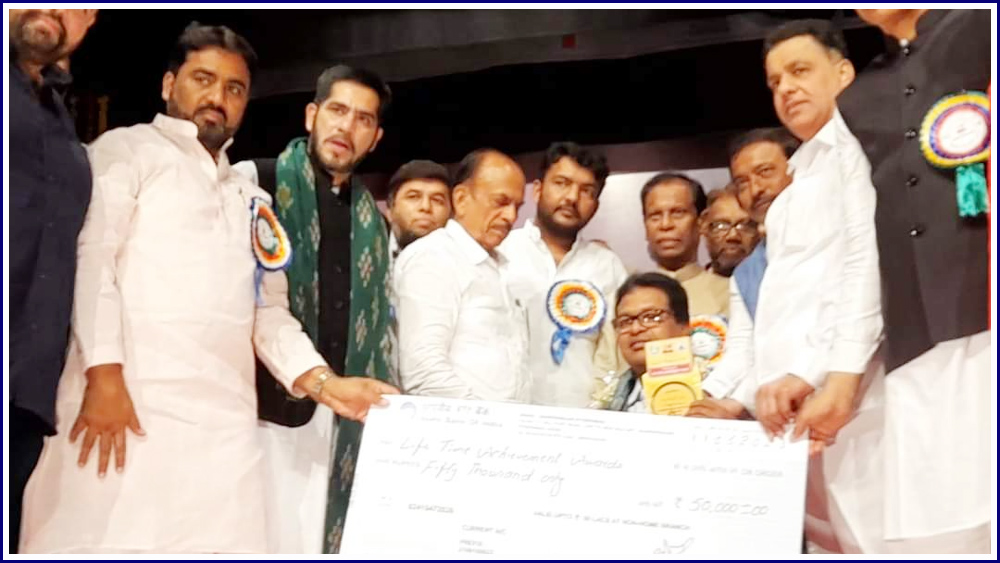یہ ایوارڈ ، توصیفی سند ، میمنٹو اور مبلغ پچاس ہزار روپیوں پر مشتمل ہے جو وزیر داخلہ تلنگانہ محمود علی کے ہاتھوں دیا گیا۔۔ اس موقع پر چیر من اردو اکیڈمی جناب خواجہ مجیب الدین نے گلپوشی کی۔