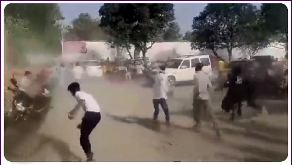 اسی دوران حامیوں نے بی جے پی ایم پی برج بھوشن شرن سنگھ کے قافلے پر پتھراؤ کیا، اس ہنگامے کے دوران بی جے پی ایم پی پروگرام سے بحفاظت باہر نکل آئےاور بال بال بچ گئے۔ اس لڑائی اور پتھراؤ کی ویڈیو کیمرے میں قید ہو گئی ہے۔ جو ویڈیو سوشل میڈیا پر تیزی سے وائرل ہو رہی ہے۔