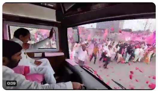 اگلی سیٹ پر بیٹھے وزیر اعلیٰ کو لوگوں کی طرف لہراتے ہوئے دیکھا گیا جب قافلہ ان کی سرکاری رہائش گاہ پرگتی بھون سے شروع ہوا۔ راستے میں جمع ہونے والے بی آر ایس کارکنوں اور حامیوں کی بڑی تعداد نے بس پر پھول برسا کر کے سی آر کا استقبال کیا۔